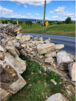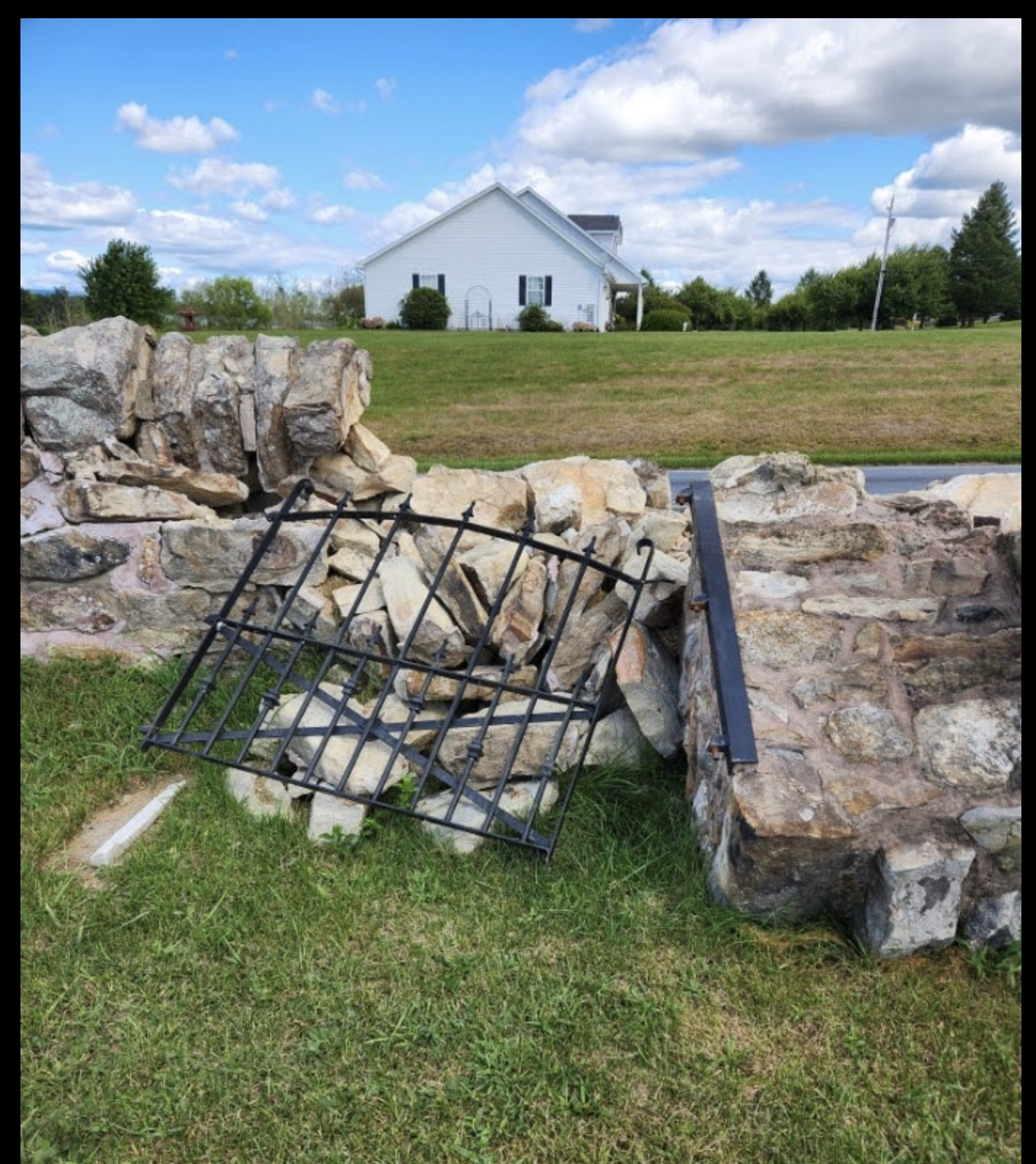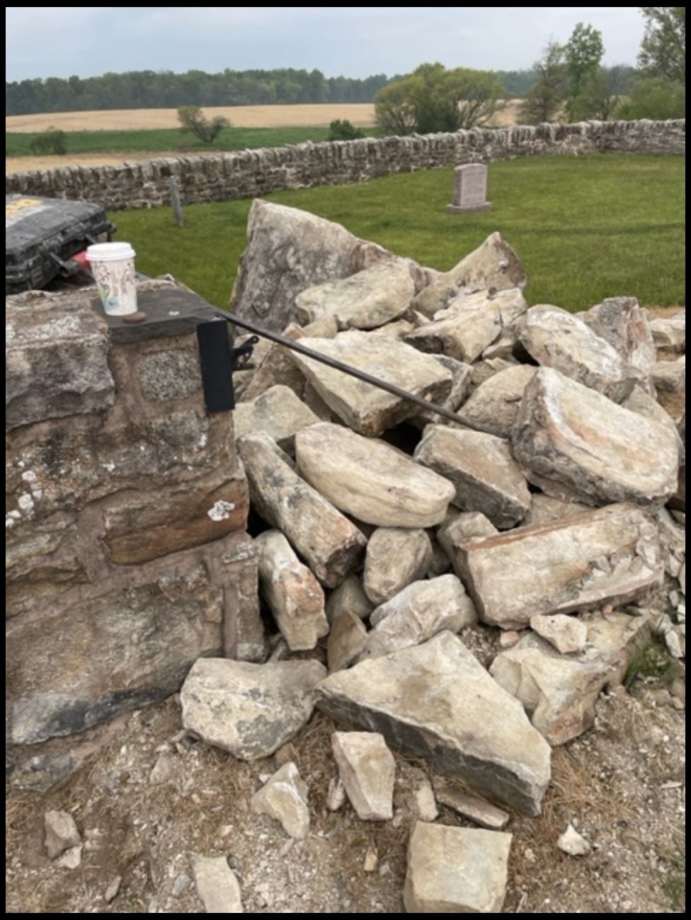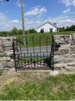 We are pleased to report that our stone mason, Bob Batdorf, has completed the extensive repairs to the Frantz cemetery along the Wintersville Road near Bethel, PA. His final tasks to mount the gate and to repair one of the gravestones were completed in April, 2024. Richard Frantz, who has worked with Mr. Batdorf on the arrangements, will arrange to complete the final payment in June. Thanks to donated time by Rodney Keeney, the final expense was reduced by about $500. Your contributions as a Frantz Clan have more than covered the cost of the repairs, as well as provided for the placement of two Jersey barrier sections to discourage future vehicular damage to the cemetery.
