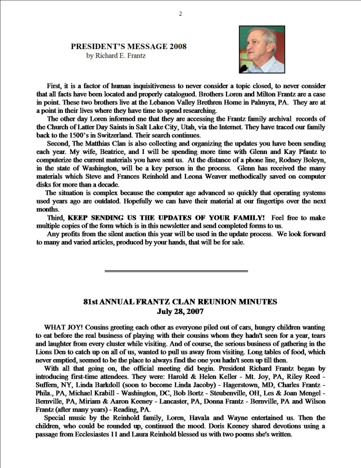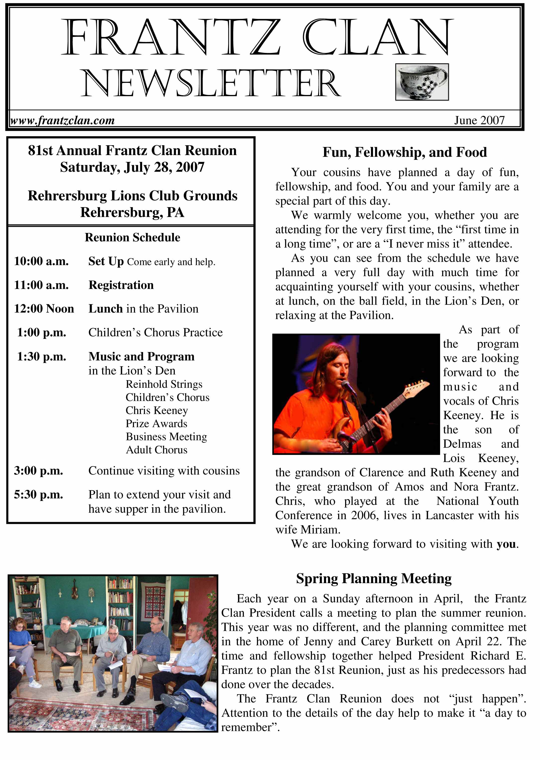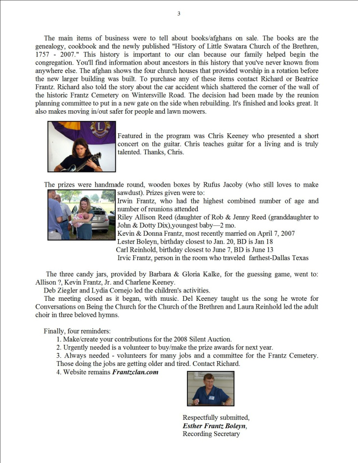 Scroll down for the newsletter followed by photos and the Reunion’s minutes.