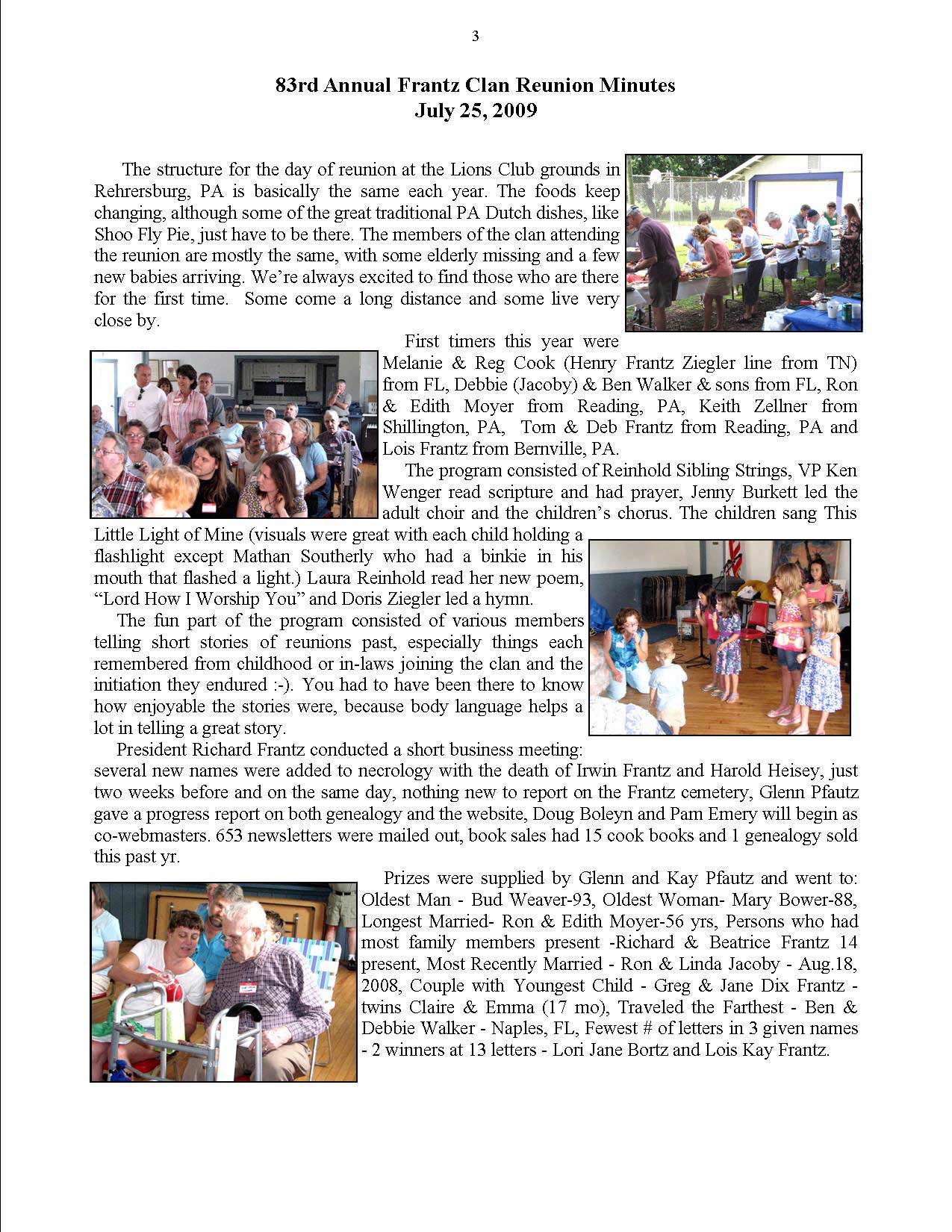 Scroll down for the newsletter followed by photos and the Reunion’s minutes.
