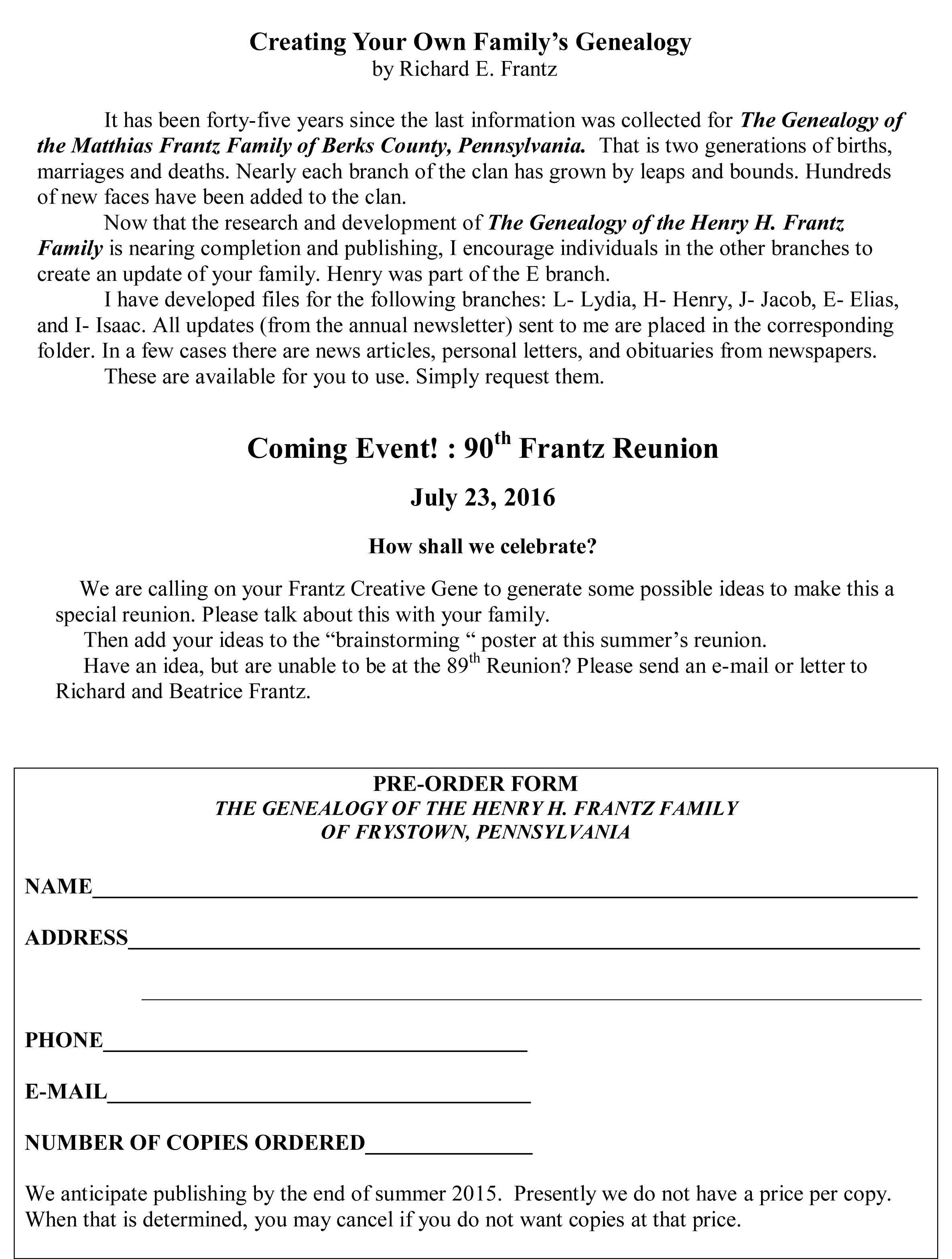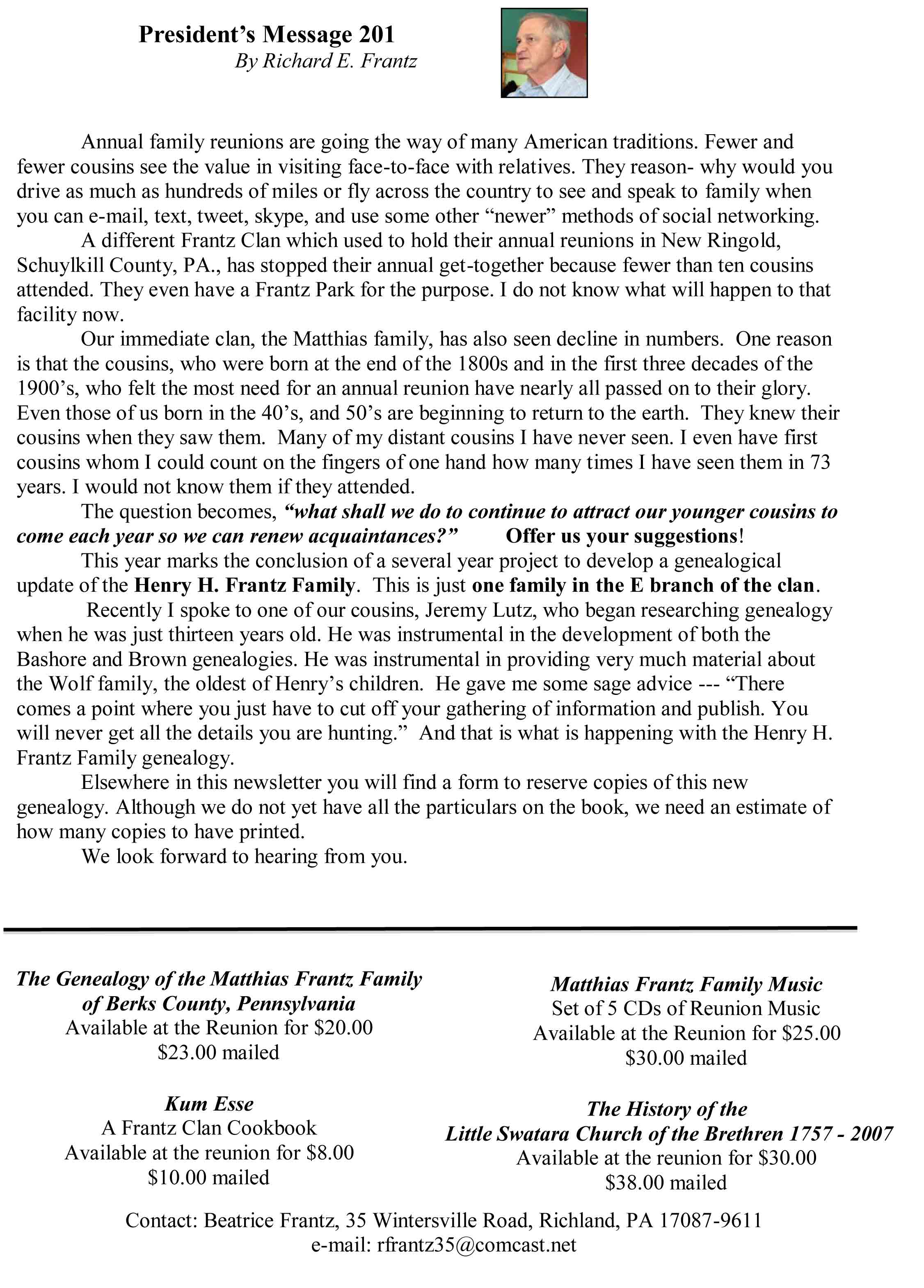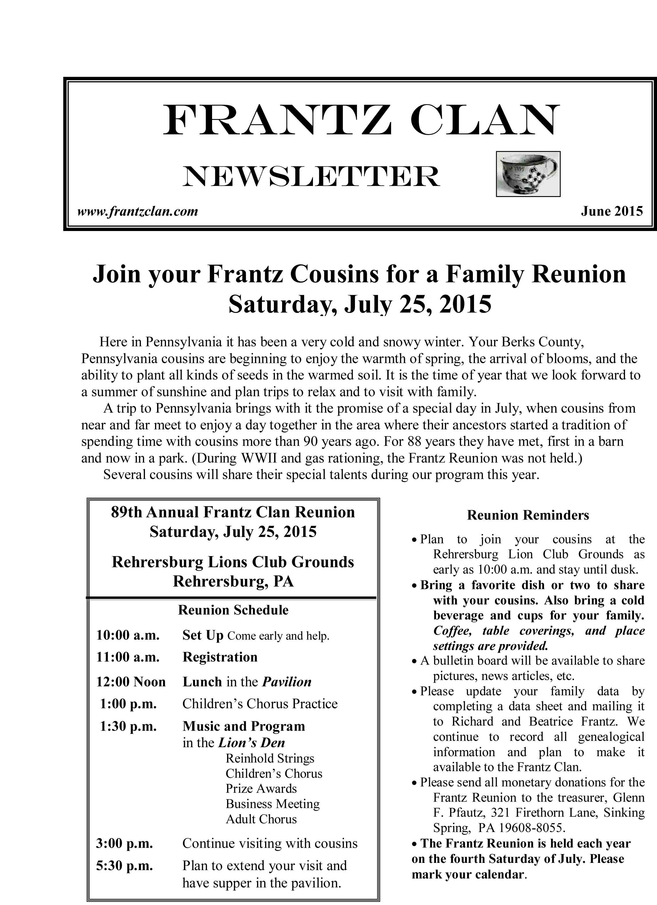 Scroll down for the newsletter followed by photos and the Reunion’s minutes.