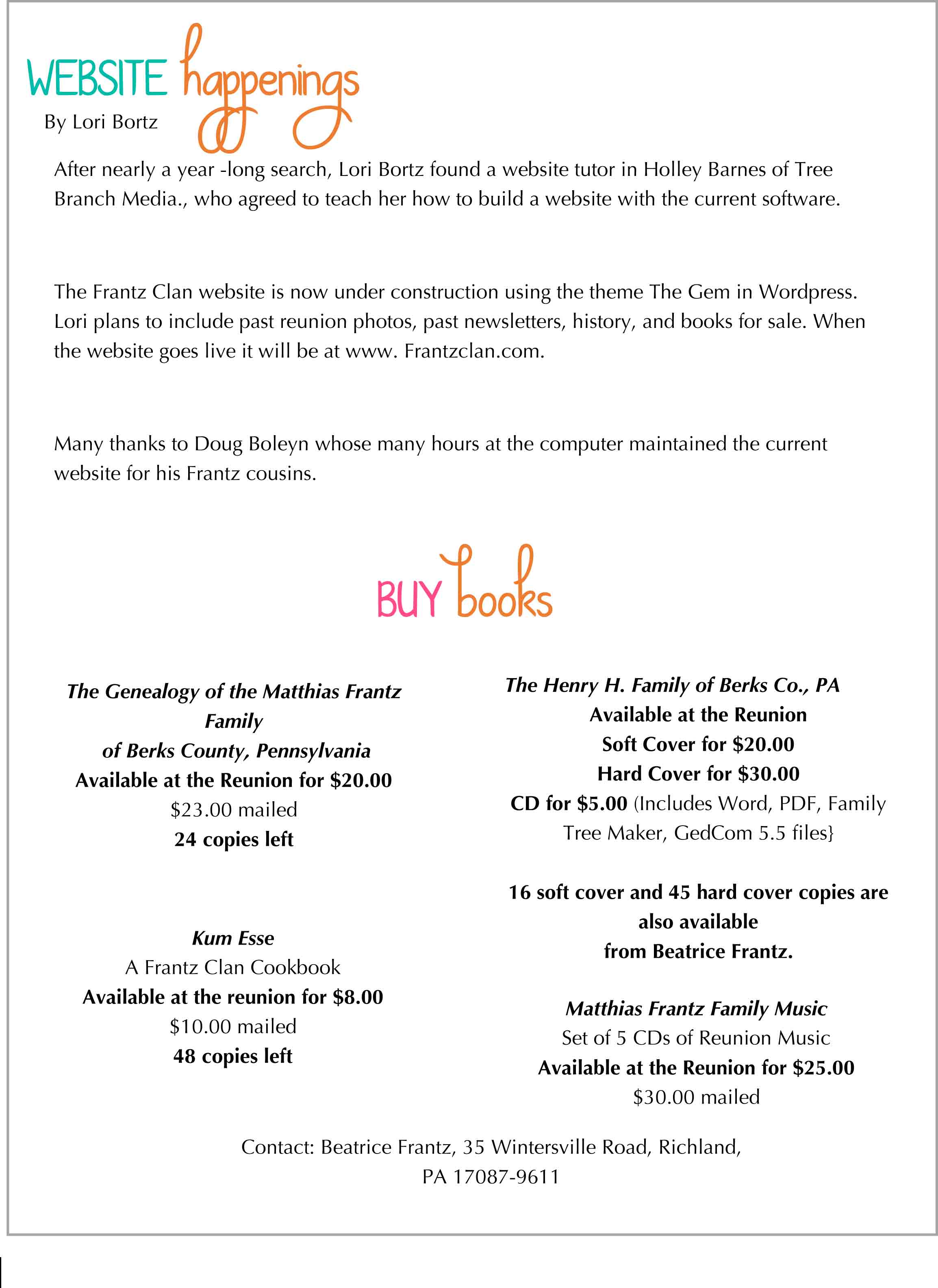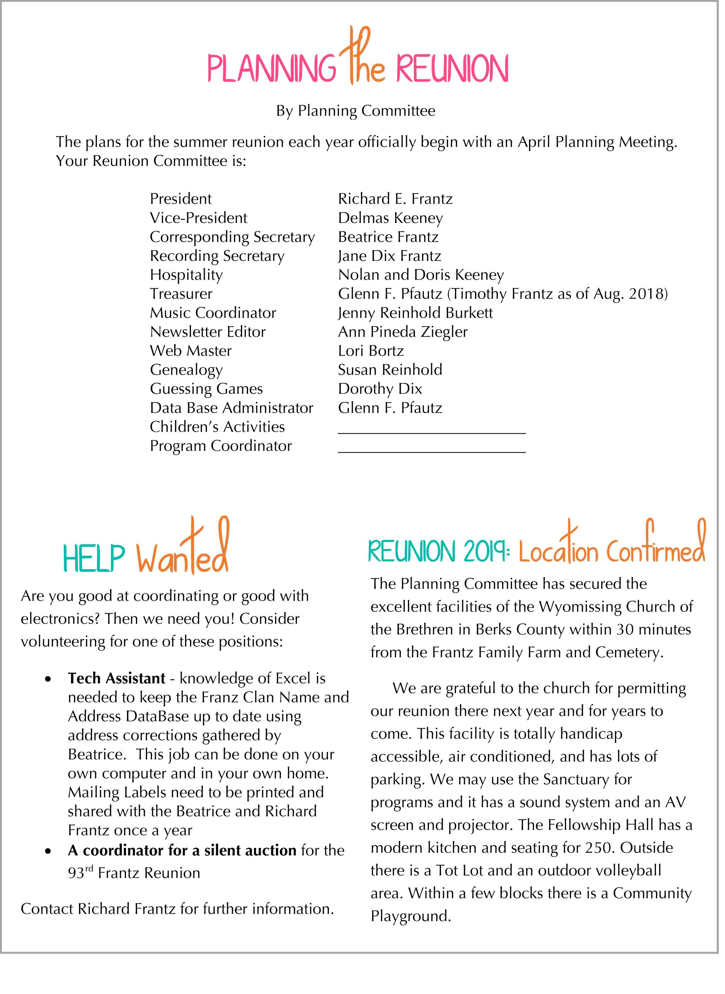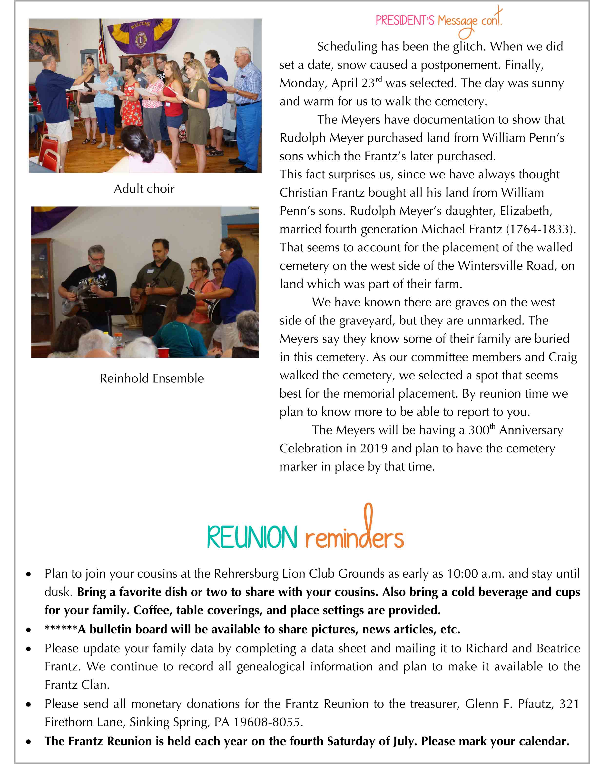 Scroll down for the newsletter followed by photos and the Reunion’s minutes.