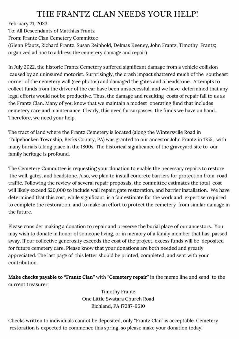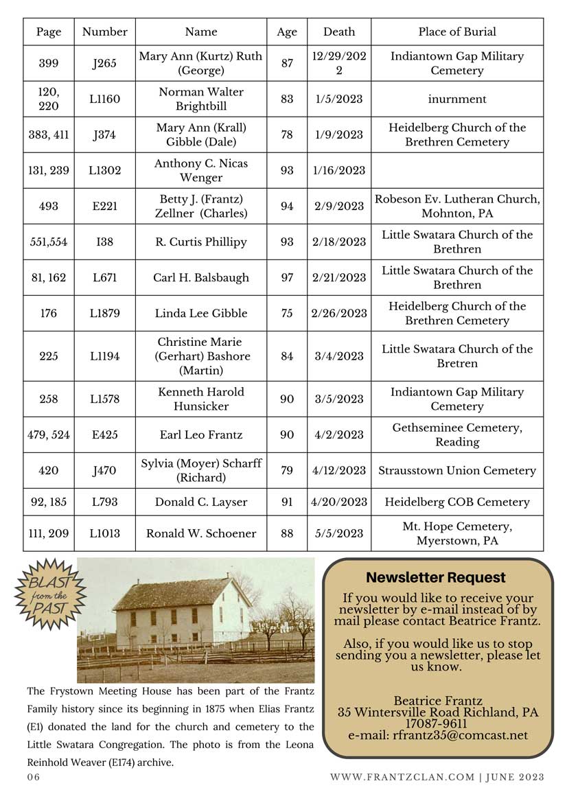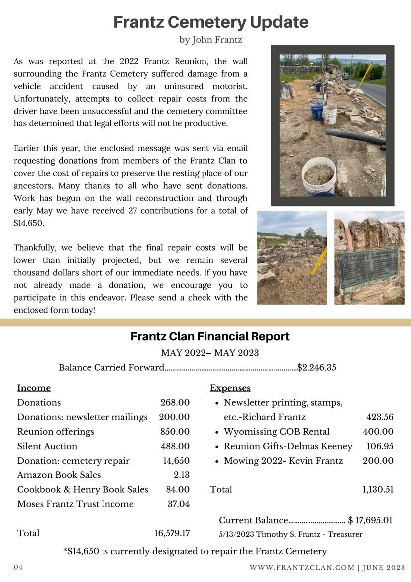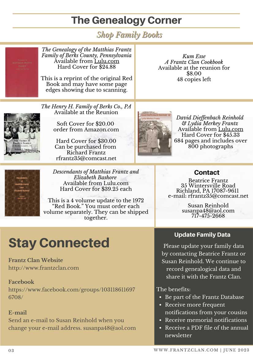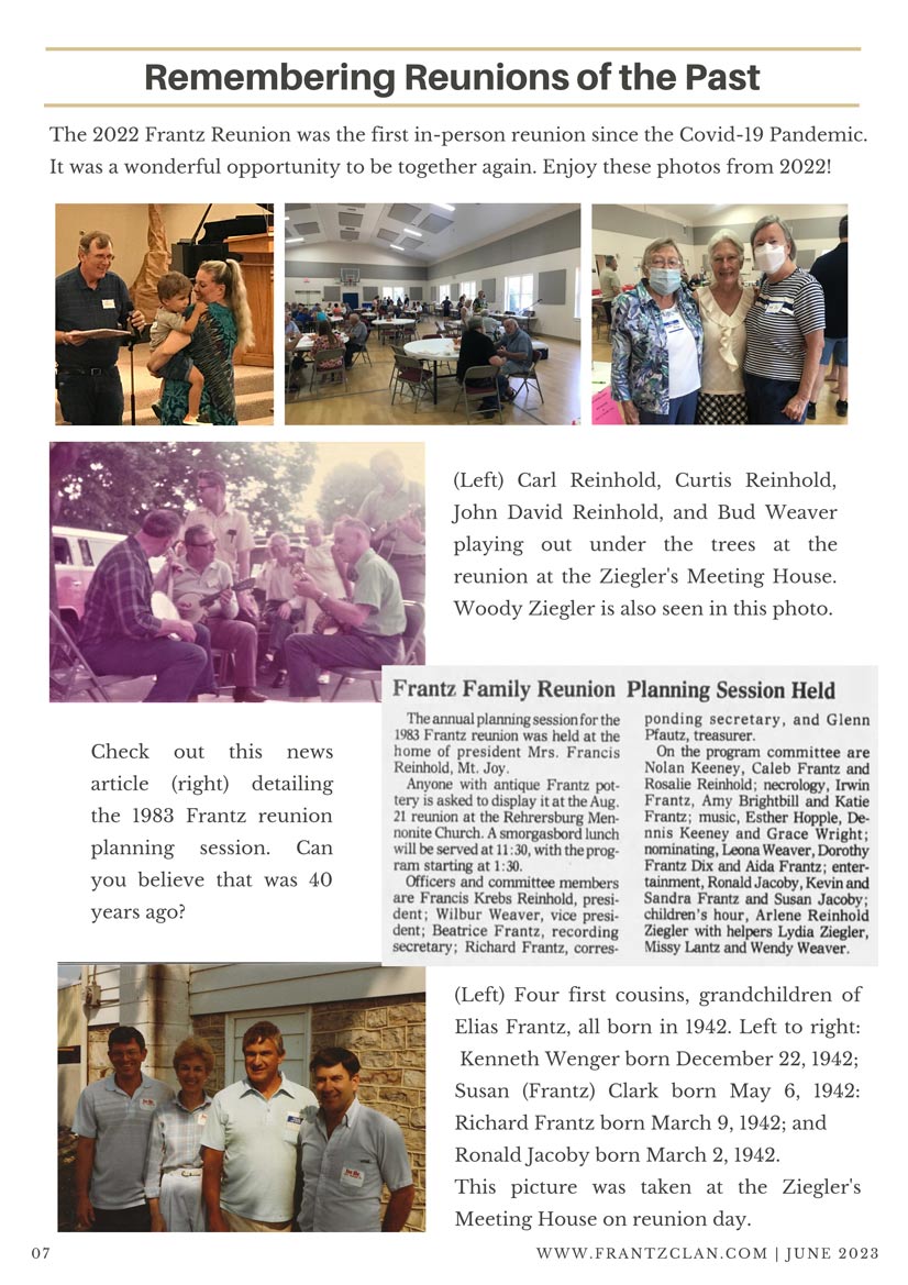 2023 Reunion Scroll down for the newsletter followed by photos 2023 Newsletter 2023 Frantz Reunion Photos
